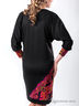 Оригинальное платье прямого силуэта с рукавом 3/4 и круглым вырезом горловины. Изделие украшено рисунками. Отличный вариант для создания стильного образа.