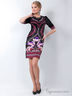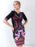 Стильное платье облегающего силуэта с укороченным рукавом и круглым вырезом горловины. Изделие украшено рисунками. Отличный вариант для создания стильного образа.