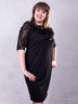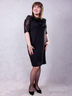 Трикотажное черное платье прямого покроя - незаменимая вещь в гардеробе каждой женщины. Круглая горловина. Кокетка и короткие рукава выполнены из гипюра. Полоча украшена крупными цветами.