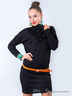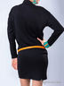 Обворожительное платье слегка приталенного силуэта с длинными рукавами. Воротник-стойка. Сзади застежка на скрытую молнию. Полочка украшена объемным жабо. Изделие выполнено из приятного на ощупь материала. Талия подчеркнута ярким оранжевым поясом. Стильный вариант для создания праздничного образа!