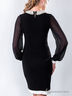 Элегантное платье приталенного силуэта с длинным рукавом и круглым вырезом горловины. Контрастные ворот из бусин, манжеты и низ изделия. Отличный вариант для создания стильного образа.