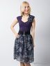 Детали: V-образный вырез горловины, короткий рукав, тканевый элемент на полочке, расклешенная юбка