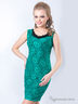 Коктейльное платье приталенного силуэта без рукавов. Округлый вырез горловины украшен матовыми и глянцевыми бусинами разного диаметра. Изделие выполнено из ажурного кружева. Будьте в центре внимания!