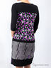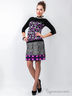 Оригинальное платье прямого силуэта с рукавом 7/8 и круглым вырезом горловины. Изделие декорировано разнообразными контрастными вставками. Отличный вариант для создания стильного образа.