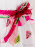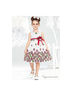 Расклешенное к низу платье без рукавов. Завышенная талия подчеркивается втачным поясом из атласных лент, украшенными декоративными розами спереди и лент из оcновной ткани платья сзади. Полукруглый вырез горловины, застежка на молнию, декоративный абстрактный принт.