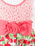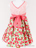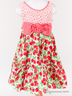 Яркое платье на лето для вашей малышки. Отрезной топ без рукавов выполнен из гипюровой ткани цветочного дизайна на ярком подкладе. Юбка-солнце с ярким фруктовым рисунком ложится аккуратными волнами. По низу юбки пришит широкий волан. Застежка на потайную молнию на боку. В бока встрочены ленты для пояса. Натуральный хлопок без полкладки.