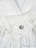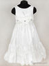 Великолепное белое платье для торжественных случаев без рукавов. Вырез горловины - лодочка, завышенная талия украшена оборками, цветами из ткани и стеклярусом и бисером. Застежка на молнию. К низу платья пришит широкий волан с оборками.