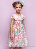 Платье в цветочном стиле на лето из натурального хлопка. Горловина оформлена пелериной из сетчатой ткани с вышивкой и жемчужинами. По низу платья цветочная вышивка с вырубкой и фигурной окантовкой подола. Расклешенная юбка на хлопковом подкладе.