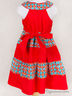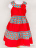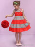 Яркое эффектное платье на лето для юной модницы. Платье состоит из чередующихся полос контрастной ткани. Полугруглый вырез горловины украшен декоративным цветочком. Застежка на молнию сзади.