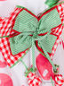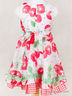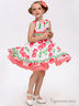 Яркое платье на лето для юной модницы. Лиф платья и подол выполнен из ткани с принтом "вишня". Подол и линия талии украшены вставками и оборками из лент в клетку в тон принтов. На талии бант из лент. Застежка на молнию сзади. Двухслойная юбка на подкладе из хлопка.