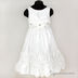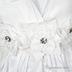 Великолепное белое платье для торжественных случаев без рукавов. Вырез горловины - лодочка, завышенная талия украшена оборками, цветами из ткани и стеклярусом и бисером. Застежка на молнию. К низу платья пришит широкий волан с оборками.