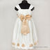 Великолепное белое платье для торжественных случаев. Вырез горловины - каре, широкие нерегулируемые бретели, завышенная талия подчеркнута поясом-лентой из бежевой ткани с декоративной розочкой и бантом. Застежка на молнию. Низ платья украшен вышивкой, пайетками и декоративными розочками.