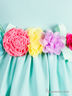 Невероятно элегантного оттенка платье, отороченное белым кружевом, настолько восхитительно, что от него сложно отвести взгляд. Оно будет прекрасно даже на королевском балу, и уже тем более станет прекрасным украшением детского праздника или семейного торжества. Пояс в виде объемных цветов придает платью романтичности.
