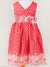 Яркое оригинальное платье для вашей малышки. Всегда актуальный принт "горох", лиф с эффектом запаха. Линия талии подчеркнута поясом с декоративными цветами из ткани. Фигурный край подола украшен широкой цветочной вышивкой, пышная юбка на подкладе. Самый яркий вариант к предстоящим праздникам.
