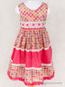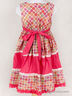 Яркое эффектное платье без рукавов. Оригинальный принт, слегка завышенная талия подчеркнута поясом, выполненным из кружевов и страз. Застежка на молнию сзади. Пышная юбка на хлопковом подкладе. Подол украшен вставками из кружев, контрастной ткани и некрупных оборок по низу изделия. Очень красивое платье на любой случай!
