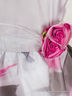 Красивейшее платье для предстоящих праздников. Отрезной лиф из однотонной атласной ткани дополняет пояс из полупрозрачной ткани с декоративным цветком. Низ платья выполнен в виде пышной многослойной юбки на подкладе из органзы с абстрактным принтом.