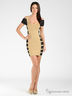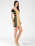 Короткое стрейчевой трикотажное коктейльное платье на бретелях и с короткими рукавами. Имеет круглый вырез. Платье из контрастных полос с люрексом.