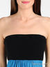 Короткое бандажное платье на бретелях. Декорировано из контрастных полос с люрексом.