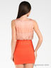 Короткое комбинированное платье без рукавов. Атласный верх декорирован кружевом по линии шеи. Юбка-бандажная.