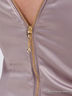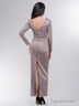 Прекрасное вечернее платье с изюминкой. Модель закрытого классического типа эффектно раскрывается со спины, где присутствует открытая линия плеч и длинная молния, регулирующая вырез. Акцентом модели является застежка на спинке в виде красивой металлической молнии на атласной ленте. Платье для особого случая.