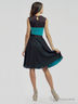 Эффектное коктейльное платье, выполненное с контрастными вставками. Изделие с округлым вырезом горловины. Модель приталенного силуэта с бантом на поясе, длина "макси". Платье отлично подчеркивает все достоинства фигуры.