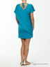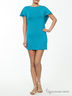 Трикотажное платье с эффектом запаха на спинке. Модель прямого покроя с короткими рукавами и округлым вырезом горловины. Отличный вариант для женского гардероба.