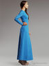 Платье "макси" с длинными рукавами и округлым вырезом горловины. Приталенный крой подчеркивает достоинства фигуры. Отличный вариант на каждый день.