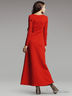 Платье "макси" с длинными рукавами и округлым вырезом горловины. Приталенный крой подчеркивает достоинства фигуры. Отличный вариант на каждый день.