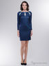 Облегающее платье от бренда XARIZMAS. Приталенная модель длиной до середины бедра, с длинным рукавом и высоким вырезом горловины. Платье изготовлено из легкого материала с добавлением вискозы, зона декольте и спинка украшены фигурными вырезами с кантом контрастного цвета.