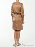 Платье в стиле сафари из шелковистой ткани "чинчи" с разрезом на спинке. Рукава декорированы хлястиками. Застежка на пуговицы. На плечах стилизованные погоны. Регулируемый пояс на кулиске и крупные накладные карманы.