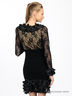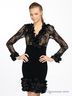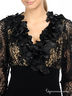 Детали: кружевные прозрачные рукава, кружевная верхняя часть изделия, V-образный вырез с запахом, ворот, манжеты и подол украшены тканевыми элементами