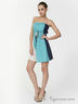 Комбинированное короткое платье с открытой зоной декольте. Модель приталенного кроя. Отличный вариант для создания модного летнего образа.