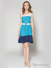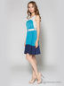 Комбинированное короткое платье чуть выше колен без рукавов с круглым вырезом горловины. В комплекте - ремень.
