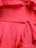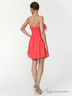Короткое однотонное платье без рукавов, на тонких бретелях, с отрезной линией талии, открытой зоной спины и плеч; декорировано фигурными воланами, функциональным поясом и широкой резинкой в области спины.