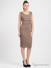 Платье приталенного покроя с короткими рукавами и округлым вырезом горловины. Спереди изделие декорировано эффектными складками. Отличный офисный вариант.