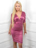 Модное платье приталенного силуэта. Выполнено из гладкого атласного материала. Глубокий v-образный вырез горловины. Короткие рукава. Талия подчеркнута поясом. Низ дополнен шлицей. Будьте в центре внимания!
