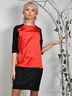 Стильное женское платье прямого кроя выполнено из приятного на ощупь материала. Изделие с округлым вырезом горловины, укороченные рукава. Платье декорировано контрастными вставками.