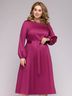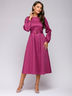 Платье ягодного цвета длины миди с объемными рукавами