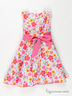 Платье из тонкой, мягкой ткани. Округлый вырез горловины. Застежка на спинке на пуговицы. Пояс переходит на спинке в ленты, завязывающиеся крупным бантом. Полочка декорирована великолепным бантиком. Расклешенная отрезная юбка. Модель дополнена тонкой подкладкой.