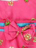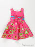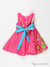Платье приталенного силуэта из тонкой, плотной ткани. Круглый вырез горловины. Застежка на спинке на планку с пуговицами. Отрезной пояс с оборками переходит на спинке в ленты, завязывающиеся великолепным бантом. Полочка декорирована крупным двойным бантом. Отрезная расклешенная юбка. Модель дополнена тонкой, неэластичной, мягкой подкладкой.