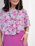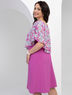 Отличное платье! А-фасон деликатно украшен пелериной сверху. Фуксия элегантно сочетается с цветочным принтом, наряд смотрится роскошно, празднично - то, что надо для вашего мероприятия. Материал очень приятен в уходе.