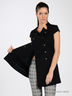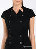 Приталенное двубортное платье-жакет. Фигурный вырез горловины. Короткие рукава. Застегивается на пуговицы. Два прорезных кармана с клапанами. В комплекте стильный пояс.