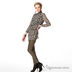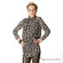 Платье-туника с абстрактным рисунком. Платье имеет длинные рукава и воротник- стойку, присборенный на резинку. Платье присобрано на резинку на бедрах и декорировано баской в тон воротнику.