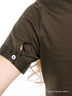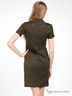 Платье с прямым силуэтом из плотного трикотажа. Отложной воротник на стойке. Планка-застежка. Короткие рукава, манжеты с разрезом на пуговице. На груди небольшой накладной карман. Есть шлевки под тонкий ремень.