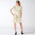 Романтичная модель из шелка с легким цветочным принтом, линия талии занижена. Фиксируется внизу на пояс. Рукава колокольчики, спереди и сзади кокетка украшена буфами из контрастной нити.