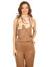 Большой платок из полиэстера бежевого цвета с рисунком в виде цепей, женских штучек и анималистическим принтом. Изделие размером 85х85 см позволит создать множество вариаций в вашем образе. Накиньте его на плечи, повяжите на шее или вплетите в прическу и вы будете выглядеть роскошно.