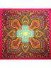 Платок Venera цветной из полиэстера. Основной цвет каймы фуксия, середина желтая с голубыми завитками, по полю расположен рисунок в восточном стиле в ярких тонах. Плотность средняя, непрозрачный, края обработаны машинной строчкой. Размер: 90х90 см.