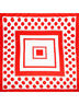 Платок Venera красно-белый в крупный горох, полоски и квадраты из полиэстера. Плотность средняя, непрозрачный, края обработаны машинной строчкой. Размер: 90х90 см.
