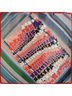 Платок разноцветный с терракотовым кантом, основной принт - полоска. Платок из высококачественного итальянского полиэстера, средней плотности, с легким атласным блеском, подшивка края - машинная строчка. Размер: 90х90 см.