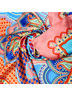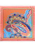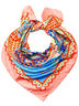 Яркий платок из полиэстера с красивым и модным принтом, который хорошо впишется в любой образ молодой девушки или элегантной дамы. Красиво драпируется, приятный на ощупь. Для сезона весна – осень, будет хорошо смотреться, с верхней одеждой, как аксессуар дополнение к платью, или любому другому яркому образу. Размер: 90х90 см.